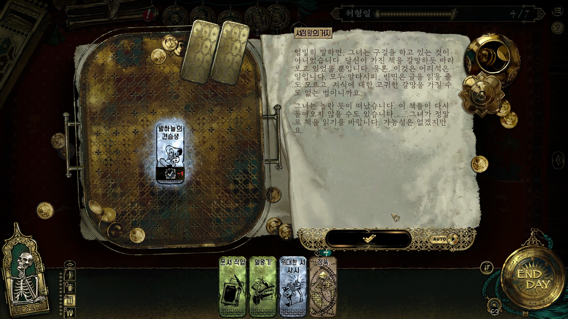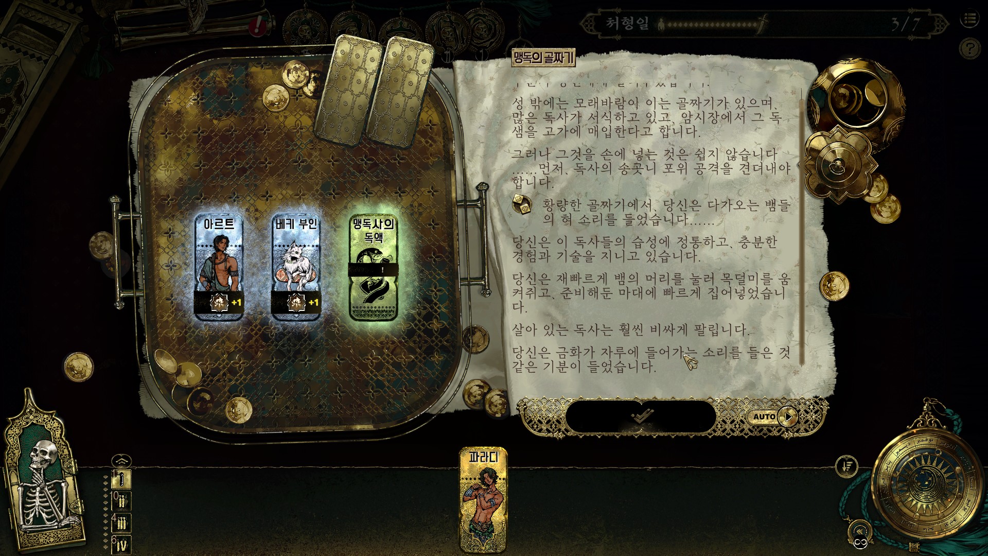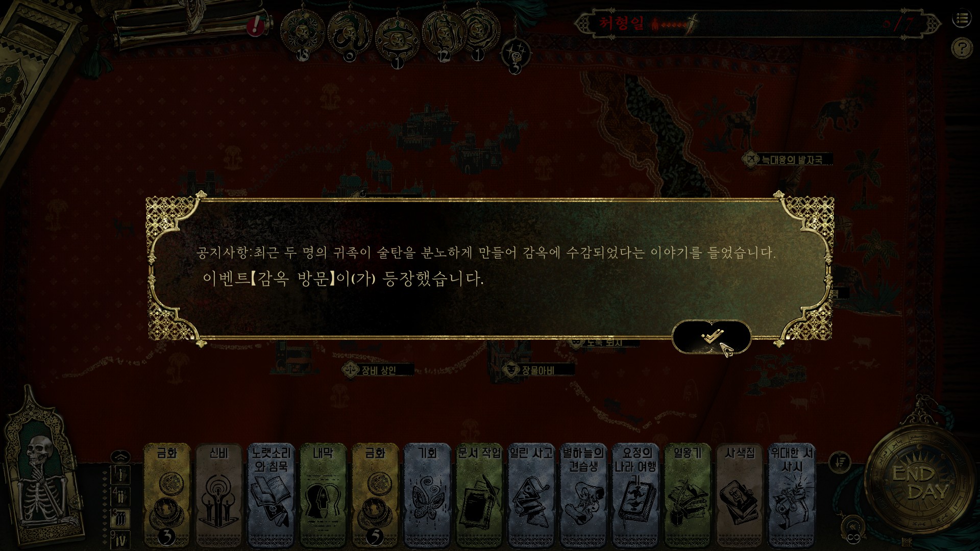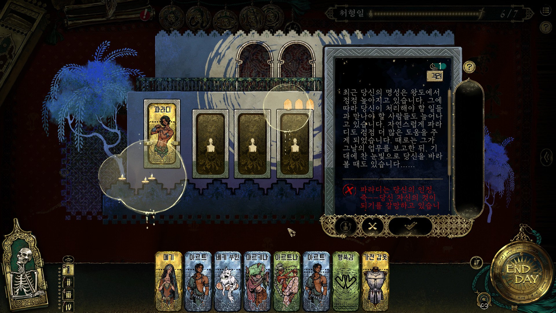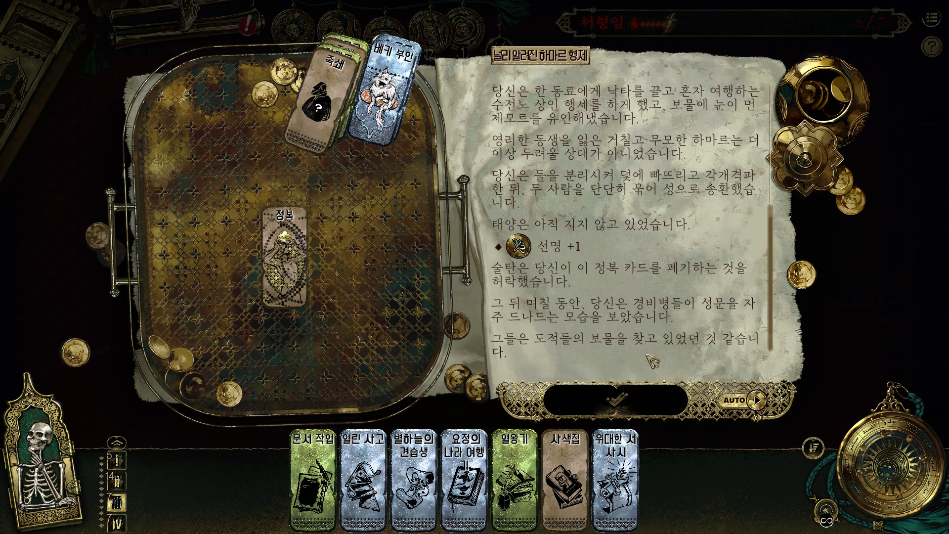 일정 턴이 지나면 메기가 한번 사제에게 부탁해서 카드를 풀어볼 방법이 없는지 제안하자고 하는데 이런 식으로는 술탄 카드를 없애지 못한다...